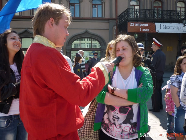 Организаторы акции решили внести в нее креатив, и вместо традиционного митинга организовали концерт для собравшихся. Также в рамках мероприятия собравшимся и простым прохожим задавались вопросы (патриотического и исторического толка) о России и в случае верного ответа гражданам давали разные подарки, в основном майки с партийной абривиатурой и пакеты с молоком.