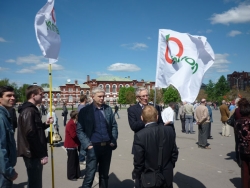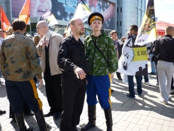 Так, один из активистов молодежного крыла КПРФ пожаловался организаторам митинга, что, якобы, на двух его товарищей "наехали" националисты, потребовав чтобы они покинули мероприятие.