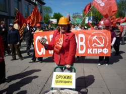 Право "первой речи" на митинге предоставили реглидеру КПРФ депутату Госдумы Ольге Алимовой. В своем выступлении коммунистка сконцентрировала внимание на проблемах трудового класса, заявив: "В период советской власти "рабочий" звучало гордо. Это была возможность показать свои лучшие качества. Были великие достижения в науке, в производстве. Мы гордились рабочим классом. Но 20 лет назад захватили страну предатели. Они стали уничтожать все то, что им мешает разрушать великую державу. Решили купить профсоюз, это удалось. Потому что профсоюзные лидеры почувствовали: лучше быть под властью и тогда все будет хорошо. Потом они начали уничтожать рабочий класс".
