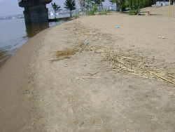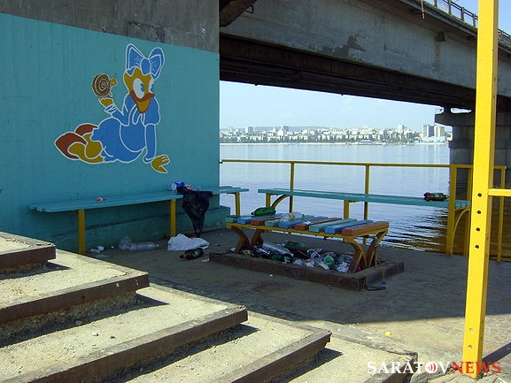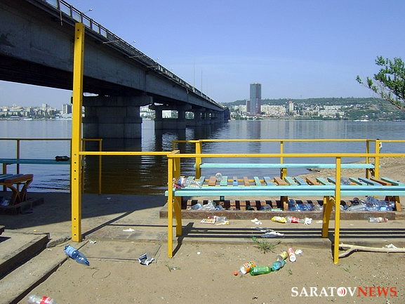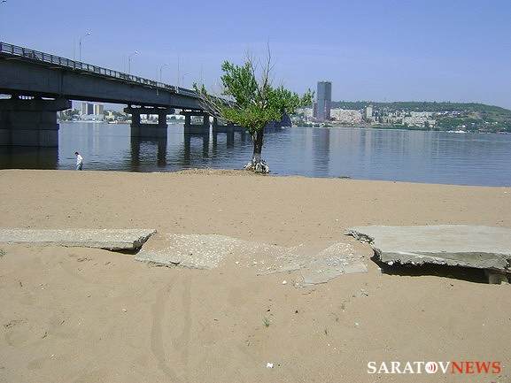 Как рассказали Saratovnews первые посетители пляжа, вдоль всего берега лежит выброшенный половодьем плавник, горы мусора, еще с прошлого года, лежат как у входа, так и подальше от моста, практически на всей территории пляжа. Обвалилась бетонная дорожка вдоль пляжа, сооружения, в том числе, раздевалки и туалеты, выглядят угрожающе. Страшен путь и по автодорожному мосту через Волгу - местами пролеты между плитами прикрывают лишь старые деревянные настилы, местами провалился бетон и неотремонтированы поручни.