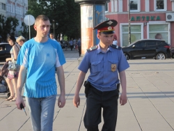 У памятника Чернышевскому группа остановилась, и было решено взять небольшой "таймаут". Один из молодых людей стал играть песни под гитару, которые слушала часть оппозиционеров. Остальные просто общались между собой. Так продолжалось около 10 минут, пока к компании не подошел сотрудник полиции, который поинтересовался зачем граждане здесь собрались, на что те ответили, что просто отдыхают.