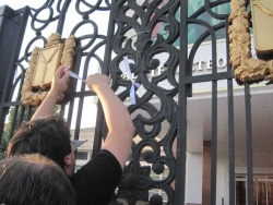 Затем граждане продолжили эту практику, повязав ленты на воротах забора вокруг правительства. Правда стражи порядка потребовали снять их от туда, что оппозиционеры и выполнили, дабы не провоцировать сотрудников внутренних органов.