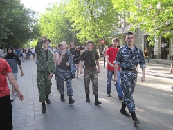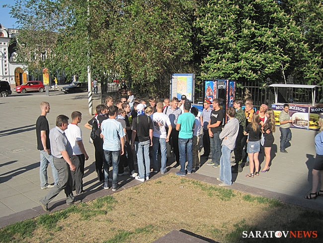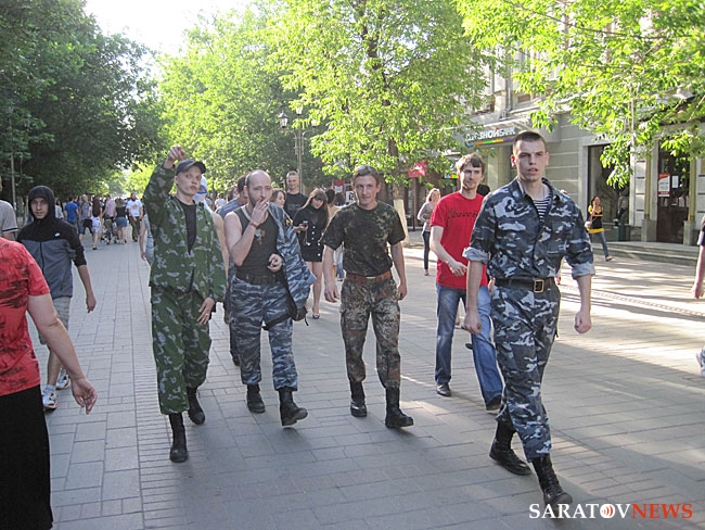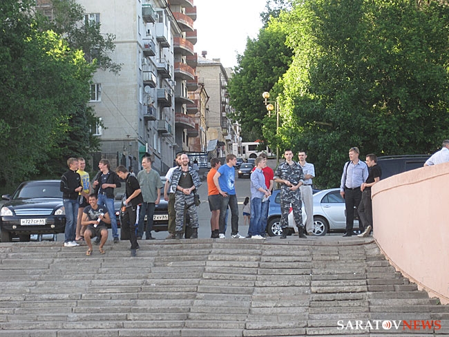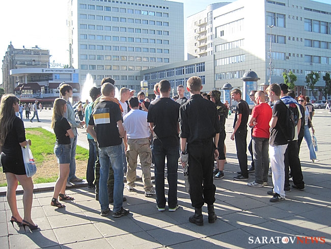 Зато ажиотаж вокруг акции поднялся немалый. Еще в 17.00, за час до официального старта акции у цирка имени братьев Никитиных, откуда было запланировано начало шествия представителей секс-меньшинств через проспект Кирова и парк Липки до Набережной Космонавтов, собрались активисты "Русского блока - Саратов". Молодые люди были настроены очень решительно и ставили перед собой задачу не допустить проведения, как они сами выразились, "гей-парада". Одну из таких групп численностью около 50 человек остановили у Липок сотрудники полиции, но "правые" заявили стражам порядка что готовятся совместно смотреть футбольный матч, после чего продолжили свои поиски.