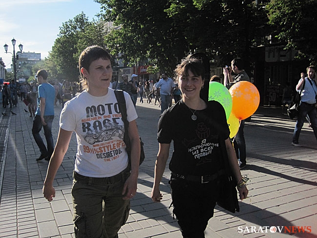 17 мая в Саратове все-таки состоялся "Радужный флешмоб", который официально был отменен. Правда, акция получилась немногочисленной, и всего в так называемом "гей-параде" приняло участие не более десятка человек, преимущественно девушек.