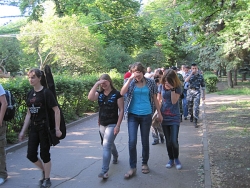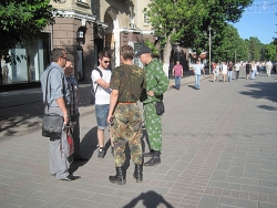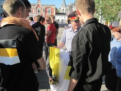 В уже более напряженном и агрессивном режиме вся процессия добралась до Липок, откуда начала спускаться к Набережной. По дороге девушки повстречали своих подруг, среди которых был один, как выразились националисты "гей". Молодого человека облили квасом, однако избежать более жесткого обращения ему помогла одна из подруг, закричав, чтобы активисты "блока" "отстали от ее парня".