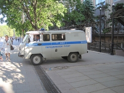 Около 18.00 от цирка по проспекту Кирова стартовало всего 3 девушки нетрадиционной ориентации, несших в руках разноцветные воздушные шарики всех цветов радуги (радуга - символ гомосексуалов). Правда почти сразу представители "Русского блока" полопали им шары. Однако это ни сколько не огорчило подруг, двое из которых состоят в гражданском браке и воспитывают 2 собственных детей. Ведь следом за ними по проспекту шло около двадцати националистов, а также множество журналистов, что, по мнению полицейских, создавало им отличную рекламу.