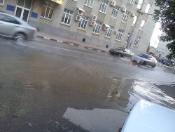 Порыв, по словам девушки, произошел "напротив здания волжской территориальной генерирующей компании или филиала регионального диспетчерского управления энергосистемы". Сильный поток препятствовал не только движению по проезжей части, но и перекрывал дорогу прохожим на тротуаре.