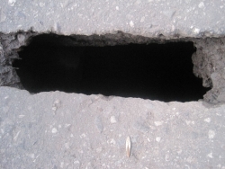 Стоит отметить, что по этому месту регулярно проезжают автомобили. В любой момент асфальт может не выдержать и обвалиться, а транспорт застрянет в яме.