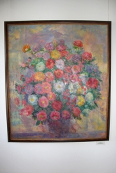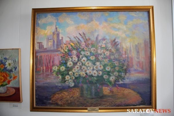 Вчера в 16.00 в доме-музее Павла Кузнецова в Саратове состоялась выставка трех картин художника. Зрителям представили "Ромашки на веранде" (1947), "Большой букет" (1950-е) и "Букет на желтой скатерти" (1953) Павла Кузнецова. Последнюю, с прозрачным пейзажем утренней Москвы на заднем плане, искусствоведы выделяют как одну из вершин пути Кузнецова. Три больших кузнецовских натюрморта, словно по правилам икебаны, дополнены двумя небольшими работами художницы Елены Бебутовой: это "Настурции" и "Этюд с колокольчиками". Бебутова – художница из поколения Павла Кузнецова, ученица Рериха и Билибина.