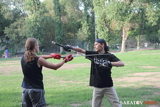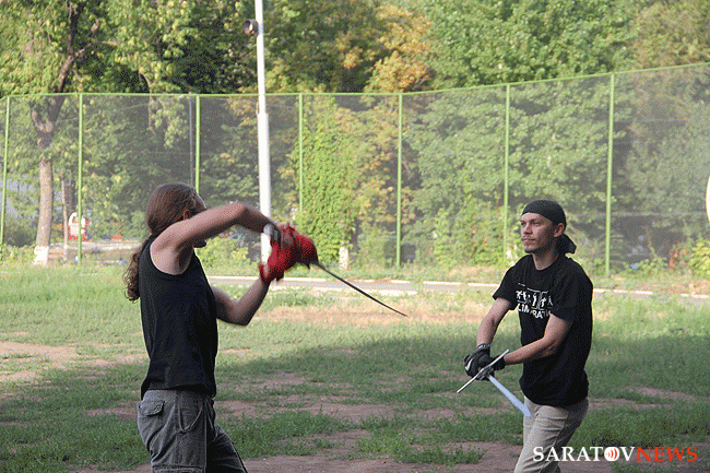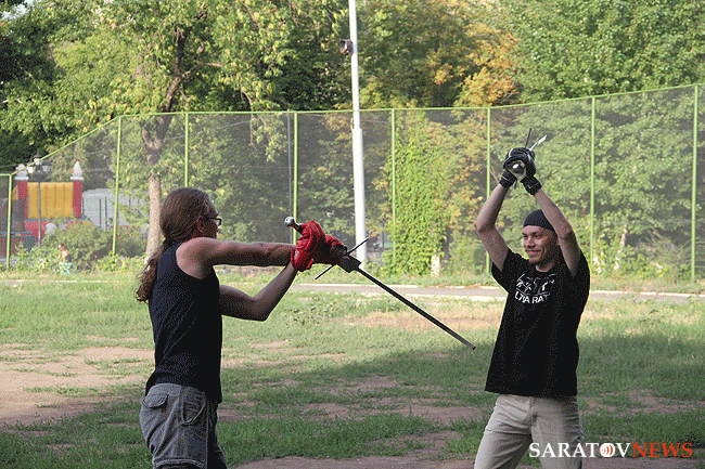 Корреспондент Saratovnews, приехавший на мероприятие, не удержался и сам принял участие в "дуэлях". Первый оружием, который он подержал в своих руках, был двуручный меч. Журналист научился отражать удары мечом в бок, в шею, в голову, узнал, что удар крестовиной оружия мог оглушить закованного в латы рыцаря на долгое время.