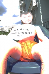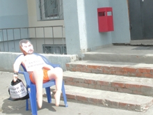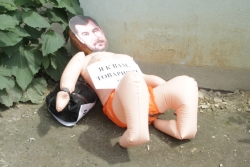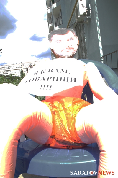 Резиновую куклу с лицом партийного экс-лидера, купленную в магазине интимных товаров и в интересах нравственности одетую в полиэтиленовые трусы посадили напротив дверей реготделения КПРФ. На обширные груди куклы повесили табличку "Я к вам, товарищи!", а к руке привязали мешок с надписью "деньги и мандаты". Люди, заходившие в офис "красных", никак не реагировали на молчаливого просителя. В конце концов куклу пересадили с прохода в лопухи.