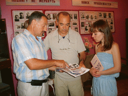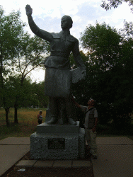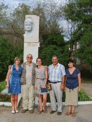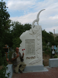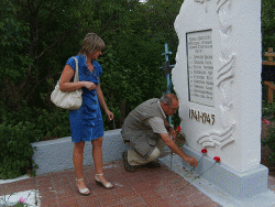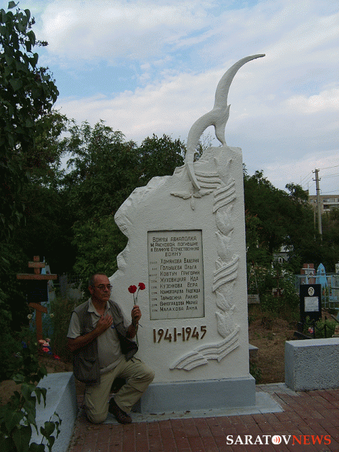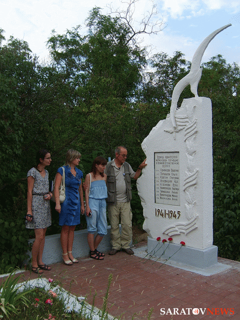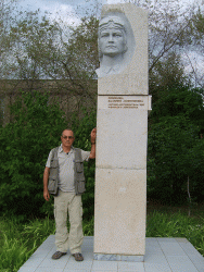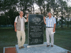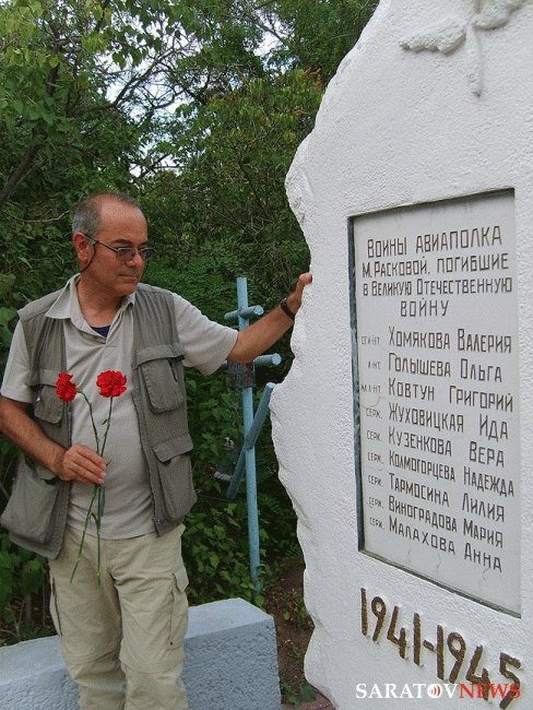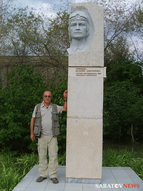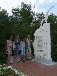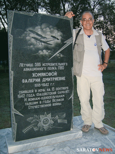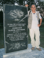 Следующим пунктом в программе зарубежного ученого стал аэродром под Анисовкой. Там журналист запечатлел на фото и видео памятный знак. установленный на месте гибели Валерии Хомяковой. Ученого потрясло, что в композиции была допущена грубая ошибка - на темном камне изображен "кукурузник", тогда как прославленный пилот летала на истребителе.