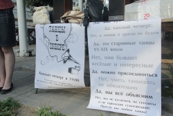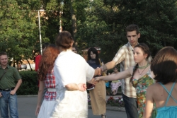 26 июля в 19.00 в сквере около театра оперы и балета прошло мероприятие под названием "Танцы в сквере". Его организаторами стали участники творческого клуба "Старый город" - сообщество, целью которого является объединение любителей исторического танца для его популяризации.