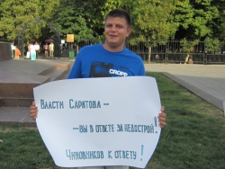 За прошедшие годы администрация Саратова не только не сделала ничего для разрешения проблемы дольщиков, но и обращалась в Арбитражный суд с иском о сносе "неправильных" домов. "А ведь для многих это единственное жилье", - сообщил один из пикетчиков. К счастью, арбитраж иск о сносе отклонил.