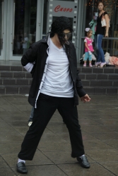 Из толпы, собиравшейся вокруг танцующих, слышалось чаще всего: "А что тут происходит?". Кто-то шептал приятелям, находящимся рядом: "А этот, в центре, на Майкла Джексона похож". Не обходилось без обидных казусов - кто-то из молодых людей принял копию артиста за девушку, но актера это не слишком смутило и не испортило его танцевального настроения.