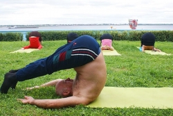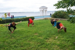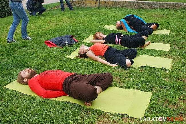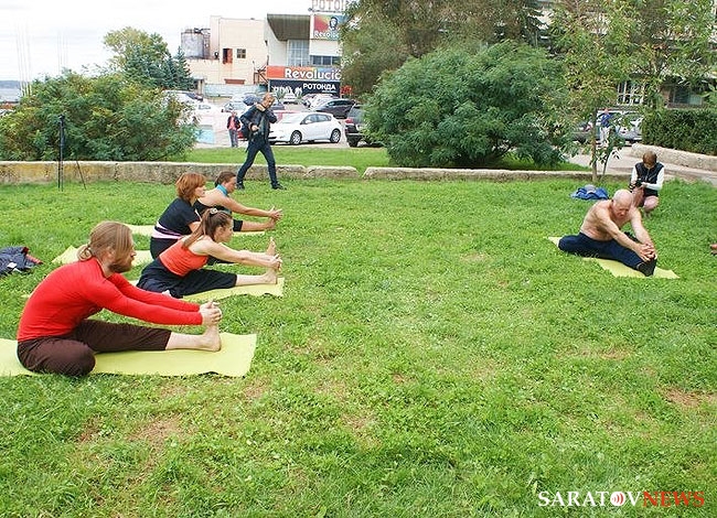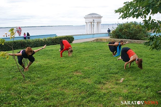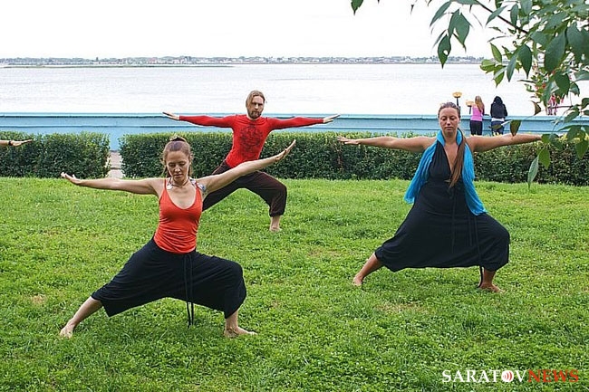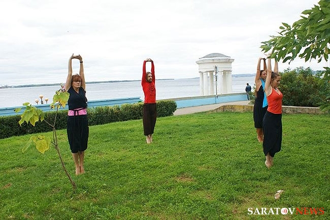Сегодня в полдень на набережной Саратова прошла показательная тренировка по йоге. В ней принял участие "отец" саратовской йоги, 70-летний Анатолий Прусаков.