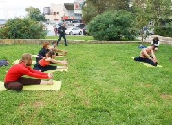Вначале тренировку проводила инструктор центра "Единение" Людмила Терентьева. После разминки и выполнения основных асанов, к участникам присоединился и сам Анатолий Прусаков, который показал позы и дыхательные упражнения, помогающие ему поддерживать здоровье и долголетие. Среди них: "Сиршасана" – поза "стойка на голове", "Сарвангасана" - поза "свечи", "Халасана" – поза "плуга", "Бхуджангасана" - поза "кобры", "Матсьясана" - поза "рыбы".
