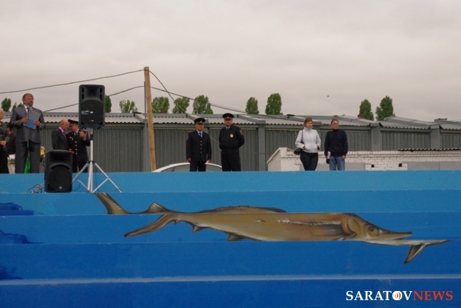 Новая набережная двухъярусная, склон между ними засажен газоном. Неподалеку от Провиантской находится большая широкая лестница - спуск к воде, которая превратилась в импровизированную сцену. Специально к открытию художники расписали ее волнами и символом Саратова - большими серебристыми стерлядями.