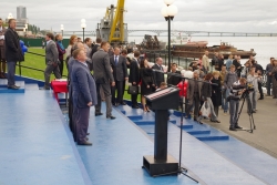 В самом начале торжественной церемонии ведущий зачитал собравшимся историю саратовской набережной от момента постройки, до момента принятия решения о продлении достопримечательности до микророайна Улеши в Заводском районе. Затем с официальной речью выступил губернатор.