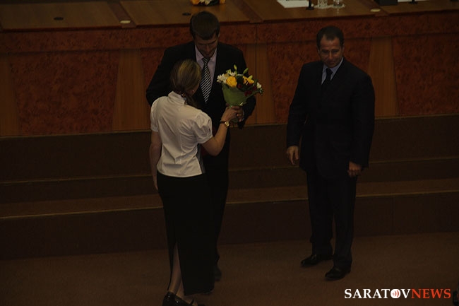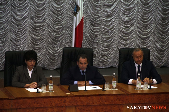 Валерий Радаев отметил, что 5 сентября 2012 года станет важной вехой в истории Саратовской области, когда регион находится на пороге реформ, а также на эту дату пришлось несколько знаменательных для губернии событий - назначение ГФИ (единственной женщины-ГФИ в ПФО), приезд премьер-министра правительства РФ Дмитрия Медведева с рабочим визитом и выборы нового председателя облдумы.