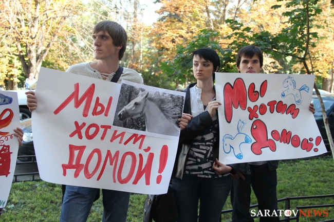 В эти минуты на Театральной площади у здания федеральной службы судебных приставов в Саратове проходит пикет защитников конноспортивного клуба "Пегас". Напомним, у организации изъяли лошадей за долги. По одной из версий, изъятие незаконно, так как лошадей изъяли за личные долги экс-директора клуба Полины Рубашкиной. Клуб проводил бесплатные занятия с детьми, страдающими различными заболеваниями, которым рекомендована иппотерапия.