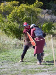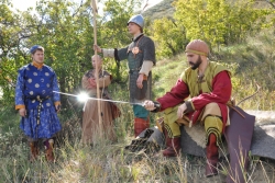 Еще больше внимания привлекла историческая реконструкция «прием послов у эмира». Эмир – глава средневекового муниципального образования «Укек», принимал послов Руси и одной из иностранных держав, заставляя их, по монгольскому обычаю, пройти между двух костров. Монголы считали, что человек с черными помыслами не сможет этого сделать. На приеме послы изъявили желание посетить ставку хана на левом берегу, но в лодке оказалось свободное место только для одного посольства. Дипломатам предложил решить вопрос на мечах. Так получилось, что в бою европеец оказался сильнее русича.