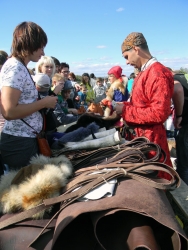 На празднике было замечено несколько известных людей – в частности, замминистра культуры Саратовской области Владимир Баркетов и замглавы администрации Саратова Дмитрий Федотов. А директор дома-музея Павла Кузнецова Игорь Сорокин оказался пойман в гуще укекского базара во время примерки шлема с кольчужной бармицей. «Тяжело в шлеме? Смогли бы в таком пойти бой?» – спросил корреспондент Saratovnews у Игоря Владимировича. «Тяжеловато. А куда деваться? Если бы пришлось биться, бился бы. Но недолго!» – улыбнулся автор музейного проекта «Атлас рима».