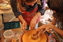При входе гостей встречал исторически достоверный базар, на котором продавали изделиях из рога, меха, латунные амулеты и глиняную посуду. Все предметы были точными копиями находок с Увекского городища. Неподалеку располагалась настоящая кузница, где кузнец работал на глазах у зрителей.