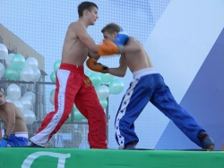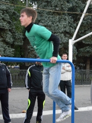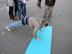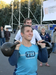 После приветствия собравшиеся разошлись по 4 площадкам, где могли продемонстрировать свою силу и ловкость в поднимании гирь, отжимании, прыжках в длину, упражнениях на брусьях и поучаствовать в скаутских забавах. Смельчаки награждались жетонами, которые, в зависимости от их вида, можно было обменять на призы, либо на молочные продукты компании-спонсора мероприятия.