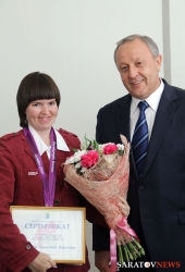 А 12 сентября вернулись в Саратов победители Паралимпийских игр в Лондоне. Их встречали в аэропорту, а затем чествовали на приеме у губернатора и дарили им ордера на квартиры .