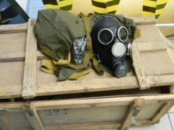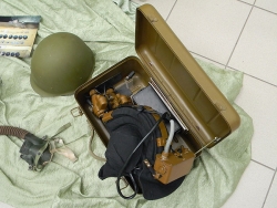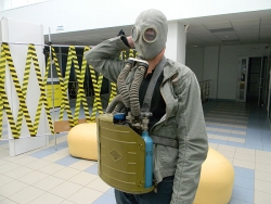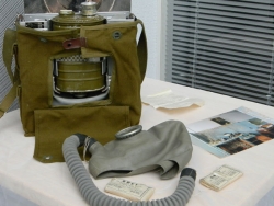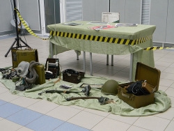 Не обошлось без креатива - один из противогазов, встречающий посетителей при входе на выставочную площадку расписан под хохлому. Хотя и без этого здесь достаточно уникальных вещей: радиостанция "Актиния" в защитном контейнере из пенопласта, с высокой антенной, она настроена на одну международную частоту, которая передает сигнал SOS; противогаз КИП-5 – это кислородный изолирующий противогаз, с кислородным баллоном, весь цикл дыхания которого идет внутри, и в атмосферу ничего не выходит. В нем можно даже нырять. Есть полевой телефонный аппарат – ТАИ-43, не связанный с электросетью.