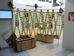 На небольшом пространстве выставочной площадке посетителям предлагается не только посмотреть на фотографии, сделанные отчаянными ребятами на разнообразных объектах, но и примерить на себя каски и противогазы, подержать в своих руках интересные артефакты ("хабар" на языке диггеров, это слово, как и некоторые другие "профессиональные" термины, заимствованно из произведения братьев Стругацких "Пикник на обочине").