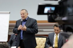 В Саратове в Поволжском институте управления им. П.А. Столыпина прошел круглый стол, посвященный законопроектам о "семейственности" во власти и об имуществе чиновников за рубежом. На встрече присутствовали: председатель Общественной палаты области Александр Ландо, его заместитель Сергей Утц, журналист Алексей Колобродов, депутат городской думы Василий Артин, директор заведения Дмитрий Аяцков и депутат Государственной думы Ольга Баталина, выступившая в роли ведущего мероприятия. К активному участию в обсуждении также были приглашены более 60 студентов вуза.