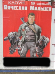 Неизвестные личности испортили агитационные плакаты кандидата в депутаты Саратовской областной думы Вячеслава Мальцева. Например, на одном из них, который находится на информационном стенде на Чернышевского и Григорьева, появилась наклейка со словом "клоун". Она закрыла первое слово фразы "Терминатор 5-го созыва". Под фразой изображен Мальцев, одетый в костюм популярного голливудского персонажа.