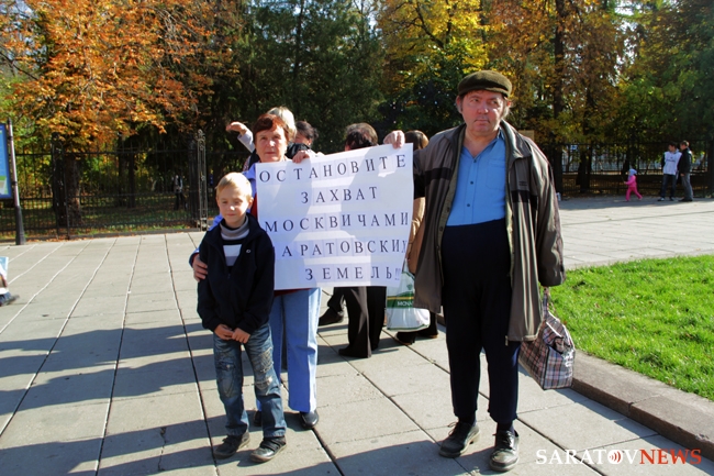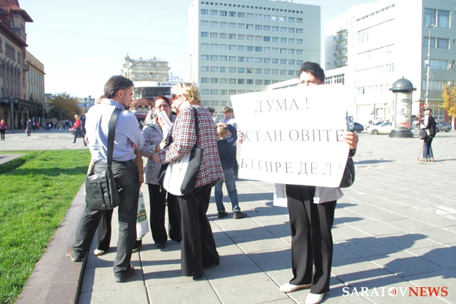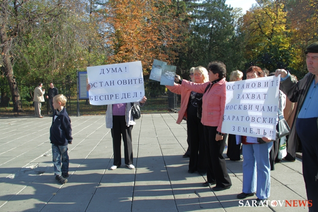 Сегодня к памятнику Чернышевскому в Саратове с пикетом вышли жители дома № 43/55 по улице Железнодорожная; они протестуют против строительства в их дворе двухэтажного развлекательного центра. Ранее на месте развернутой стройки была детская площадка на четыре многоэтажных дома. "В результате захватнических действий застройщик Батарыкин строит для Москвы коммерческий торгово-развлекательный центр. Нашим детям осталась только дорога. Четыре раза Пилипенко, глава администрации Кировского района встречался с нами, обещал выяснить, с 14 сентября. До сих пор ничего не выяснено. У нас подписи собранны против этой стройки на пяти листах", – пожаловались корреспонденту Saratovnews местные жители.