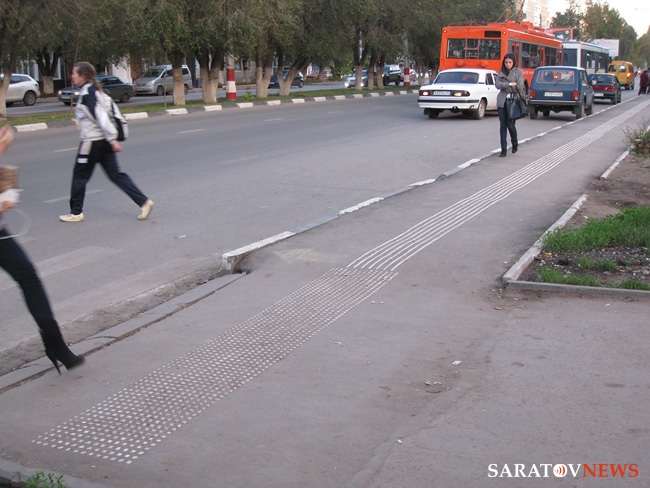 На Энгельские тротуары нанесены тактильные указатели для слабовидящих гражан. Как пояснили корреспонденту Saratovnews в пресс-службе администрации города, на территории муниципального образования реализуется целевая программа "Доступная среда", в рамках которой обеспечивается доступность для людей с ограниченными физическими возможностями.