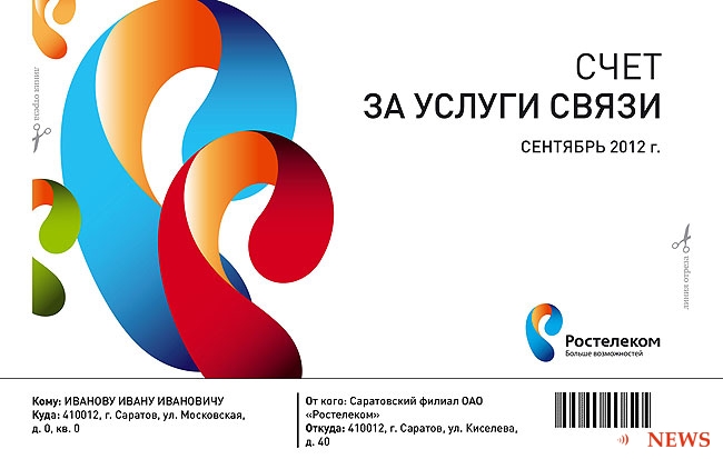 С октября 2012 года ОАО "Ростелеком" вводит новую форму счетов в Саратовской области. Теперь все абоненты – физические лица будут получать фирменные разноцветные счета - квитанции.