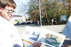 Солнечным днем 8 октября к памятнику Чернышевскому вышли жители дома № 43/55 по улице Железнодорожная в Саратове. Горожанам не понравилось, что у них во дворе на месте детской площадки строят некое двухэтажное здание. Застройщик тоже пришел на акцию и доказывал жителям, а также журналистам, что его двухэтажное здание всем пригодится.
