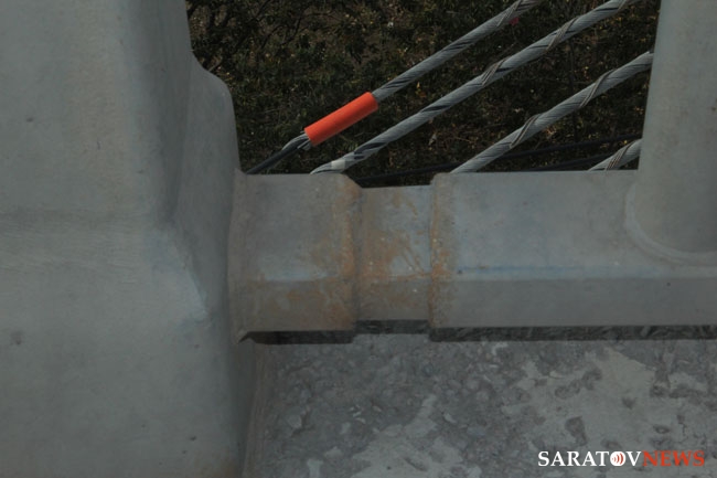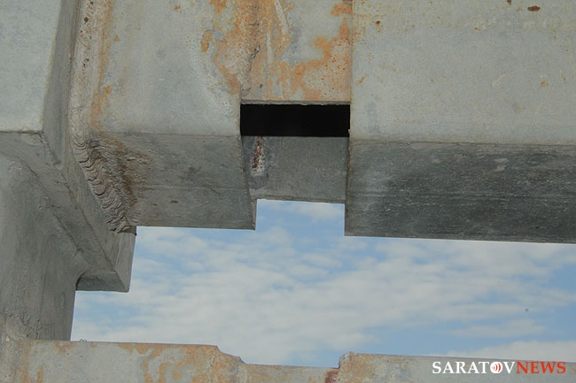 Две трещины замечены корреспондентами Saratovnews на автомобильном мосту "Саратов-Энгельс". Обе проходят через дорожное полотно и имеют в ширину около 10 сантиметров. Одна находится недалеко от въезда на мост со стороны саратовского берега, вторая расположена примерно в двухстах метрах дальше. Первый дефект уже заварили металлической арматурой, второй разрыв перил все еще можно наблюдать.