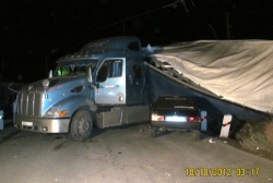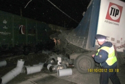 По версии полиции, сегодня около двух часов ночи в районе села Березина речка, между станциями Примыкание и Багаевка произошло столкновение товарного состава и фуры "Петербилт". Грузовой состав был собран из 68 вагонов щебнем и керамической плиткой, им управлял 39-летний машинист. За рулем автомобиля сидел 26-летний водитель, а в кузове грузовика находилось 20 тонн пустых бочек. По предварительным данным, автомобиль выехал на запрещающий сигнал переездной сигнализации.
