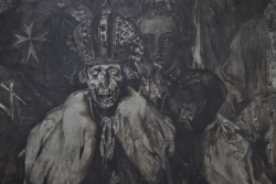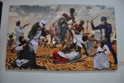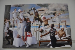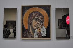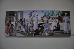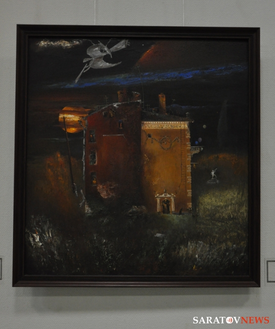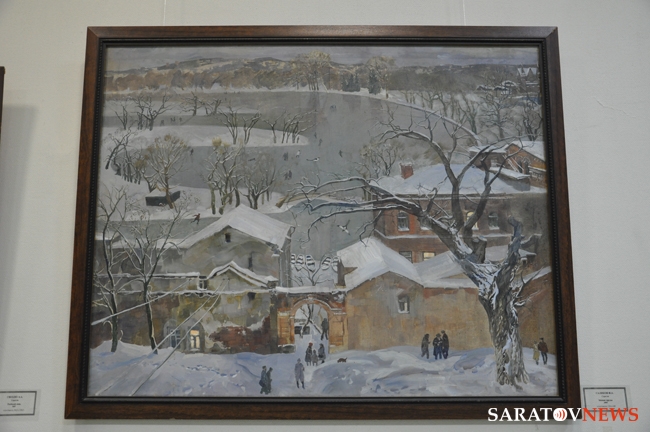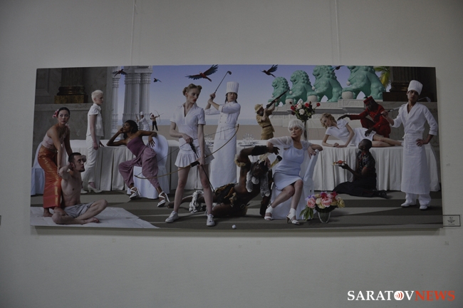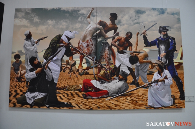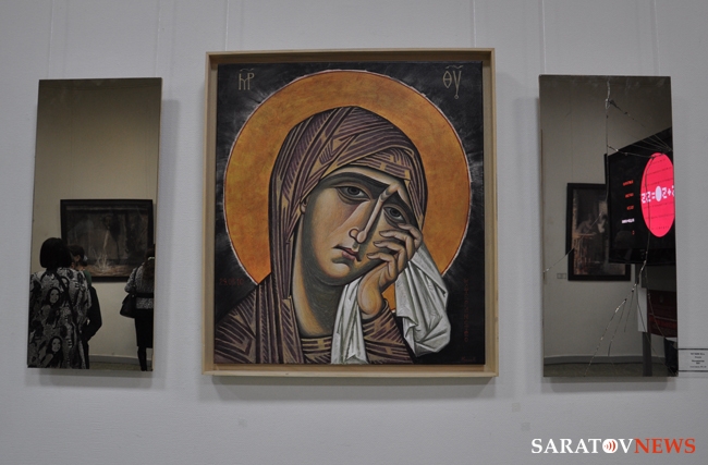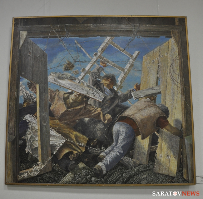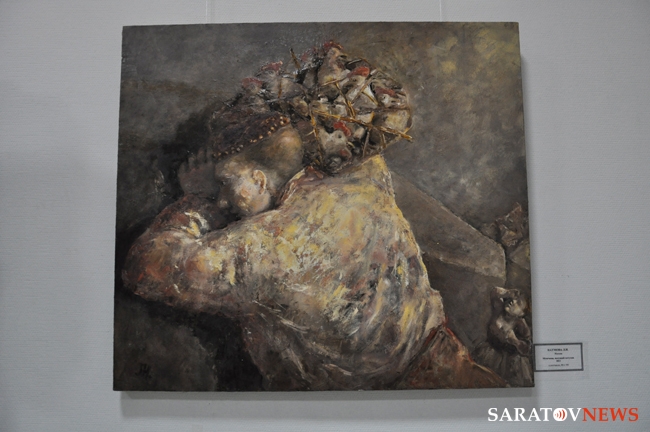 Вчера в Саратовском художественном училище имени Боголюбова состоялось торжественное открытие выставки "Красные ворота" – передвижной выставки актуального искусства. Объединившей художников Москвы и 12 регионов Поволжья. Больше всего провинциальных художников представил Саратов. Начавшись у нас, выставка пройдет четыре российских города и завершится в Москве. Имя выставке дала картина саратовского художника Анатолия Учаева. Картина "Красные ворота" степенью безумия персонажей напоминает брейгелевских нищих – сельчане в лохмотьях не то открывют, не то разрушают деревянные ворота. На них сыпятся доски с торчащими гвоздями, персонажи наносят себе раны и мешают друг другу.