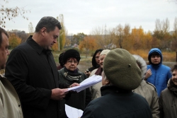 Глава администрации лично разъяснил собравшимся горожанам, что земля отдана в аренду еще в 2008 г. Эта зеленая территория, как и прочая муниципальная земля, в свое время находилась в ведении действующей тогда областной власти, которая и распорядилась ей по своему усмотрению.