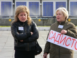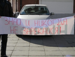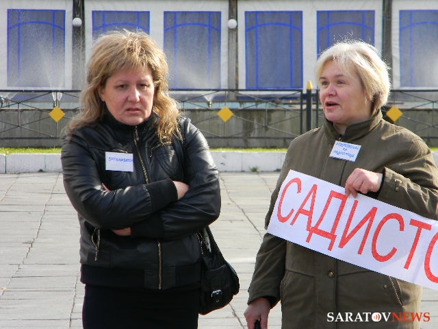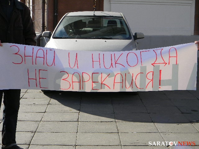 Тем временем, стоявшие в тени кинотеатра активисты с плакатами спустя полчаса после начала начали перемещаться. "Что, уже все?" - сразу же спросили у них собравшиеся журналисты и прохожие. "Нет - на солнышко перебираемся, замерзли", - ответили женщины. На улице действительно было достаточно холодно - видимо, это, а также раннее время и выходной день и стало причиной невысокого интереса горожан к мероприятию. Саратовцы бросали взгляд на столпившихся участников пикета и пробегали мимо.