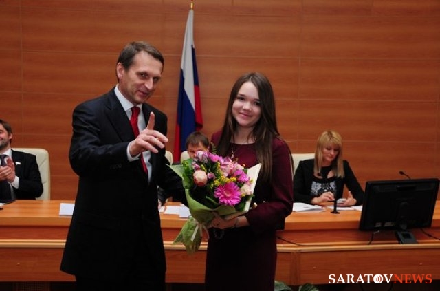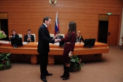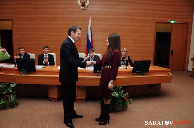 Диплом первой степени за победу во Всероссийском Конкурсе нормативно-правовых актов "ЗаконоТВОРЕЦ" Елизавете Яковлевой вручил сам спикер Сергей Нарышкин.