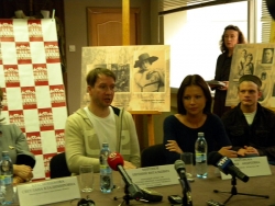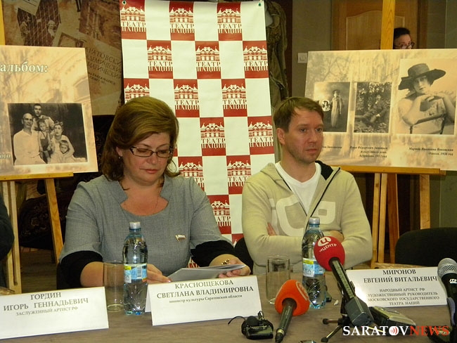 Пресс-конференция с участием актеров Евгения Миронова и Марии Мироновой, а также министра культуры Саратовской области Светланы Краснощековой прошла сегодня в театре драмы им. Слонова. "Калигула – это особый спектакль. Вопреки многим ожиданиям в нем нет аналогии с сегодняшним политическим днем. Это – история, прежде всего, о художнике и власти. Калигула – крайне утонченная личность", - сказал Миронов. Символом спектакля стал шифер, что, по мнению актера символизирует власть. "Но, в то же время, это – очень хрупкий материал. Вы сами можете стать свидетелями этого: каждый раз что-нибудь отламывается", - шутит он.