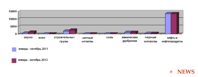 На увеличение погрузки зерна повлияла неопределенность с прогнозом валового сбора урожая 2012 года. Существующий риск введения эмбарго на экспорт зерна создали условия для интенсивного вывоза накопленных запасов зерна нового урожая и прошлых периодов. Основной объём отгрузки зерна (62%) приходится на Египет и страны Средней Азии.