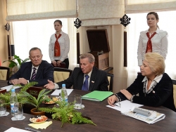 "Для меня институт Общественной палаты Саратовской области очень важен. Александр Соломонович, я и многие наши сегодняшние политические деятели были инициаторами создания Общественной палаты региона, " - отметил в своем вступительном слове Дмитрий Федорович Аяцков. - "Это послужило созданию Общественной палаты и на федеральном уровне, и в отдельных субъектах федерации. То, что беспокоит сейчас общественность, очень хорошо трансформируется через Общественную палату и доносится на разных площадках. Александр Соломонович всегда посвящал себя работе с людьми, преданно служил народу. Очень приятно видеть такого человека в нашей команде!". Александр Соломонович Ландо, в свою очередь, рассказал об истоках возникновения понятия "Общественная палата", о её сегодняшней составляющей, о кадрах, которые представляют данную структуру и о том, насколько важно для него лично подписание соглашения о сотрудничестве с Поволжским институтом управления имени П.А. Столыпина.