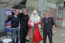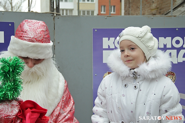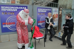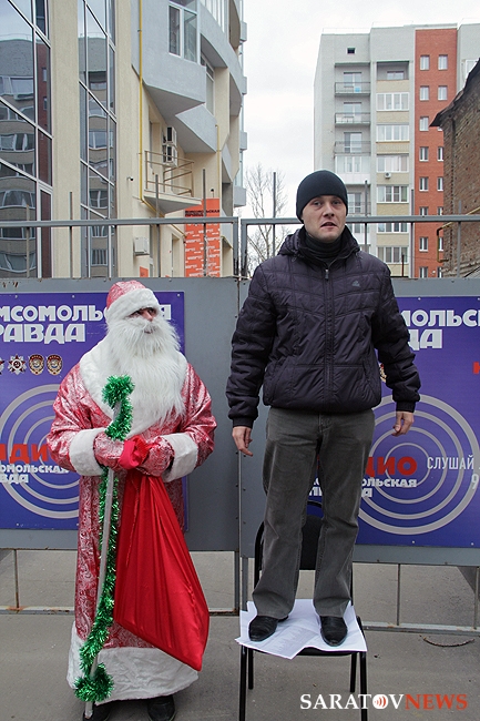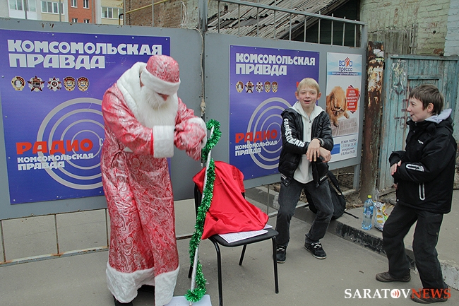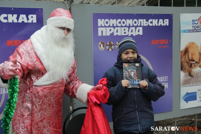 Сегодня жители Саратова имели возможность поздравить Деда Мороза с днем рождения. Мероприятие прошло на площадке пресс-центра саратовского представительства "Комсомольской правды". Праздник отмечается ежегодно 18 ноября в Великом Устюге, и, согласно местным поверьям, символизирует полноправное вступление зимы в свои права. Всем прохожим предлагалось продемонстрировать Деду Морозу какие-либо свои достижения в самодеятельности в обмен на подарки из красного мешка. За полчаса Деду Морозу рассказали множество стихотворений разного уровня сложности, спели несколько песен и даже научили танцу Gangnam Style известного корейского исполнителя. При этом, помимо детей, проявить себя изъявляли желание и люди более старших поколений. Так, молодой человек, представившийся "Саньком", получил музыкальный диск за свою елочку, которая родилась в лесу, а пенсионерка Людмила (или Люсенька, как ее называл Дед Мороз) поведала о страданиях Танечки без мячика.