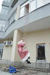Кроме того, в рамках мероприятия Дед Мороз продемонстрировал присутствующим, каким образом ему удается оказываться в домах детишек в Новогоднюю ночь и подкладывать, таким образом, подарки под елку. Как "выяснилось", добрый волшебник проникает в жилища с помощью веревочной лестницы. При этом, по его словам, он предварительно договаривается с родителями, чтобы они оставляли окна открытыми. На вопрос журналистов, как он планирует посещать детишек, живущих в зданиях от 18 этажей, он ответил, что будет спускаться с крыши подобно альпинисту, и это не будет проблемой. "Всех с наступающим Новым годом!", - поздравил журналистов Дед Мороз на прощанье.