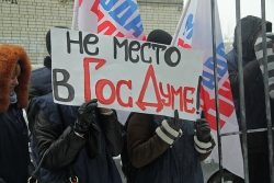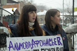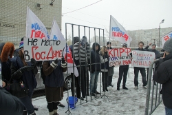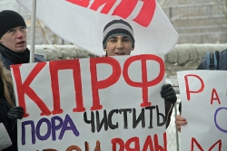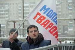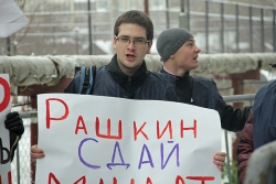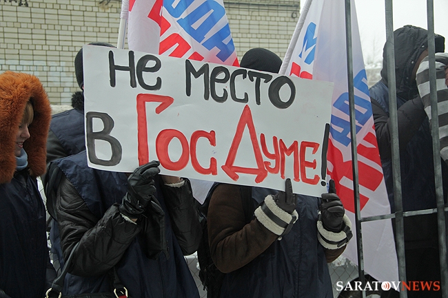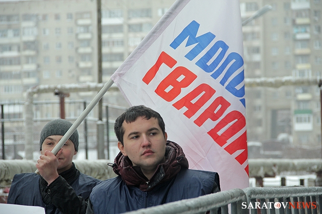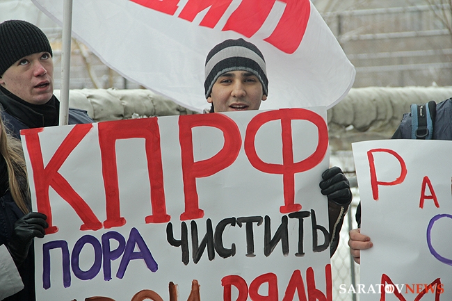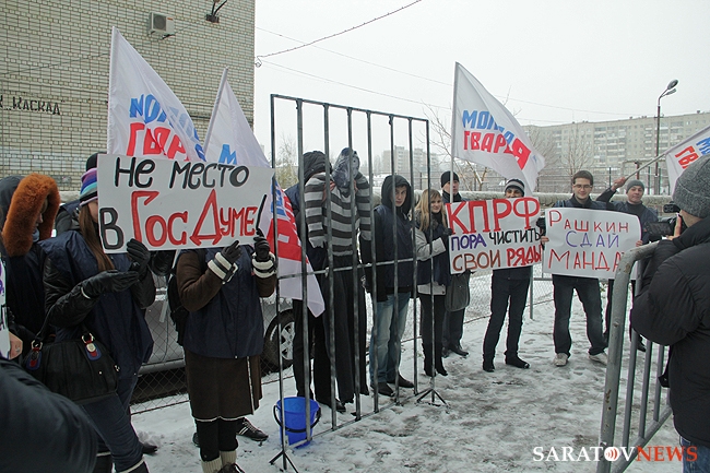 Сегодня активисты МГЕРа устроили пикет с перфомансом возле офиса Саратовского отделения КПРФ. Они требуют от депутата Государственной думы Валерия Рашкина сдать мандат, а также "ответить за свои слова". Требование основано на сообщении, оставленном в "твиттере" депутатом-коммунистом, что во время стрельбы он представляет себе вместо мишени лицо Путина. Перед входом в отделение КПРФ они расположили чучело Рашкина, одетое в рубашку c черно-белыми полосками, и поместили его за импровизированную решетку. "Мы хотим, чтобы его высказывание приравняли к экстремизму и посадили депутата в тюрьму", - пояснили молодогвардейцы журналистам. В ходе мероприятия активисты выкрикивали риторические лозунги с призывами КПРФ "почистить свои ряды", а также просили Афанасьева и Алимову перестать "прикрывать Рашкина". В общей сложности на пикете насчиталось около двадцати участников, девять полицейских и одна жительница дома, выступающая из окна своей квартиры с требованием прекратить мероприятие, мешающее спать ее малолетнему ребенку.